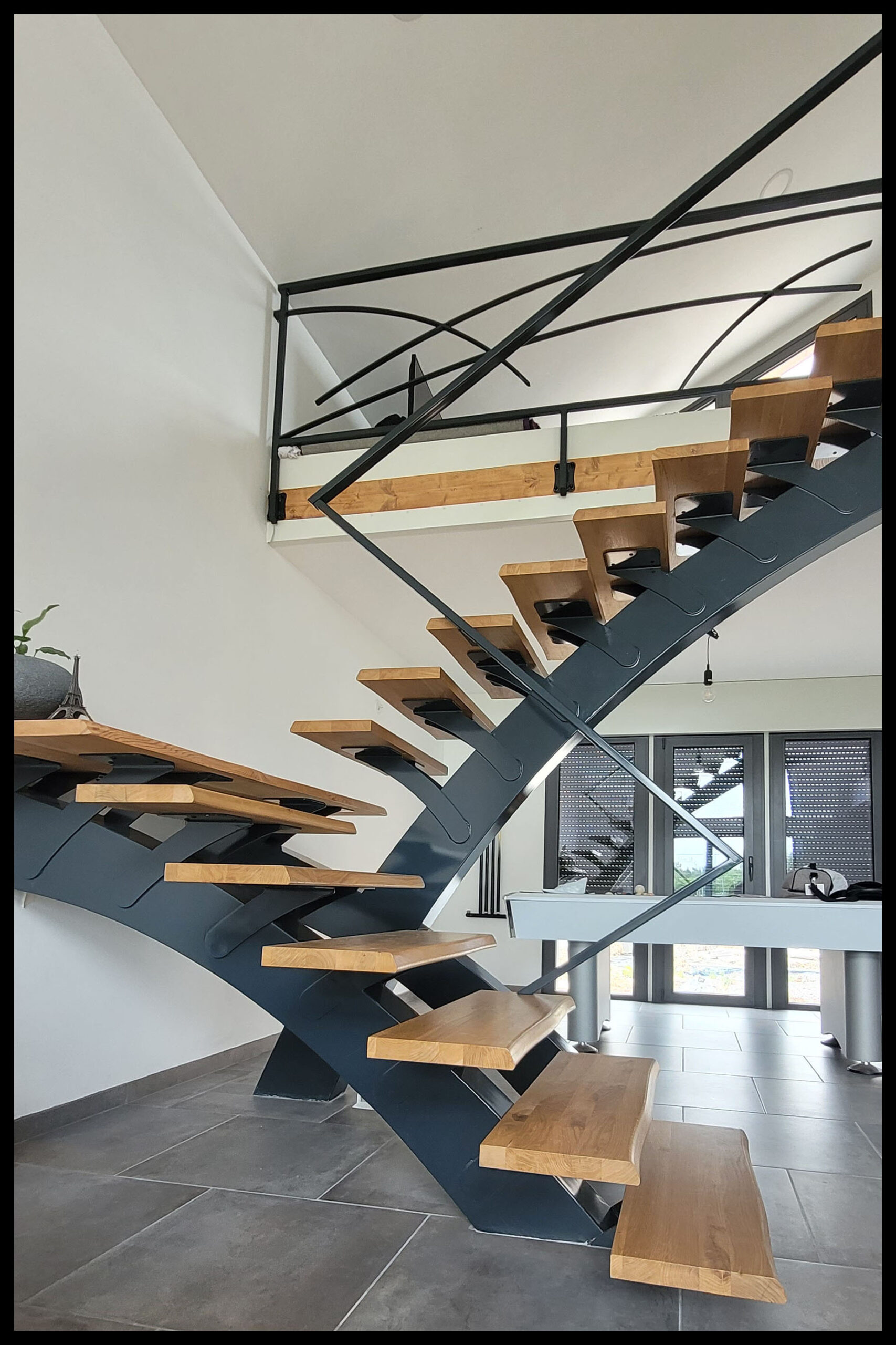 L’ensemble du processus de conception vise a créer un équilibre harmonieux entre le métal et le bois, tout en s’assurant que l’escalier est à la fois solide, durable et esthétiquement attrayant.