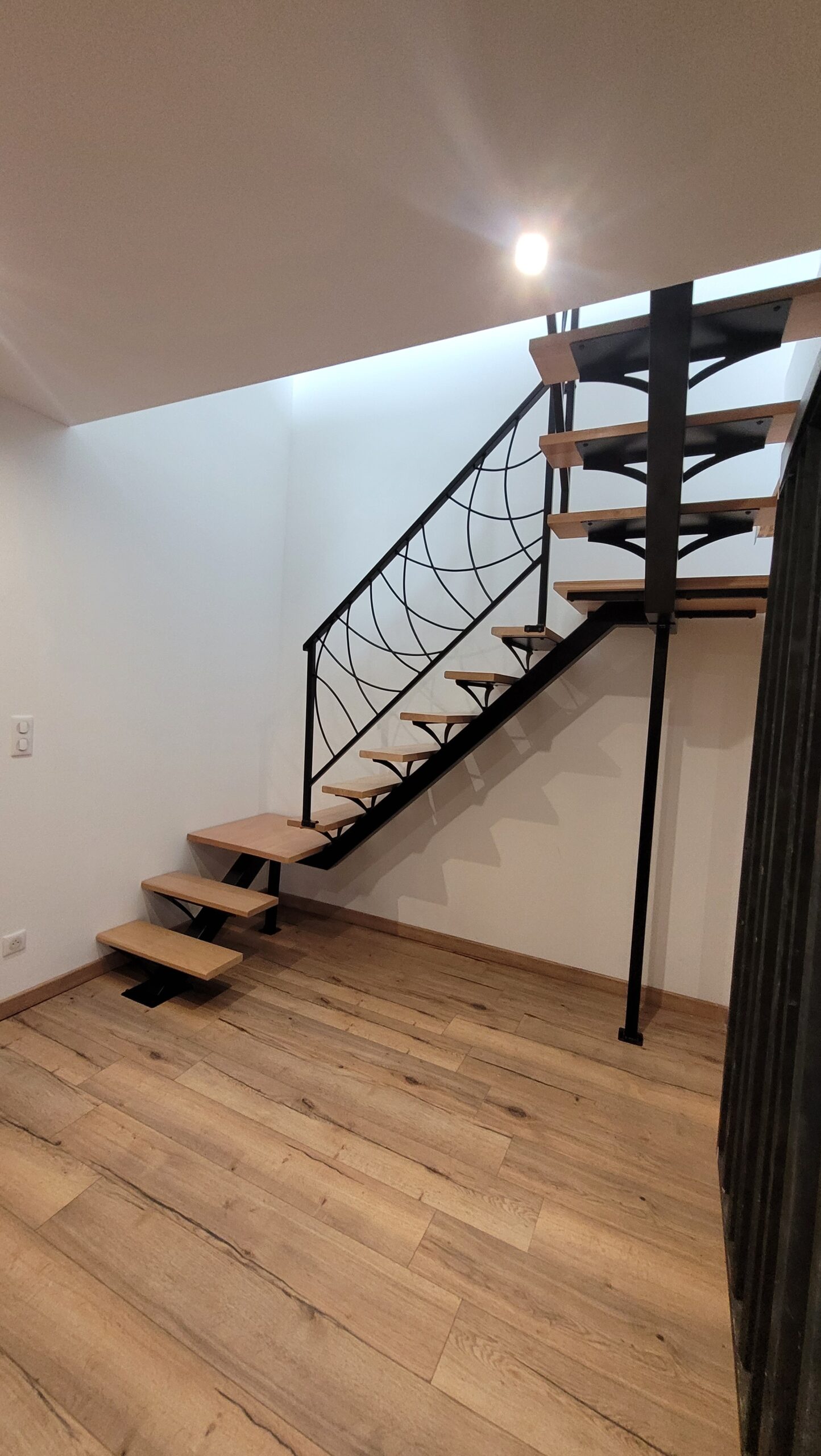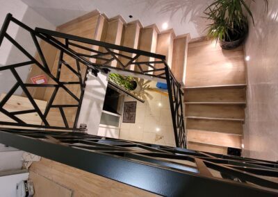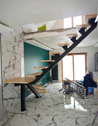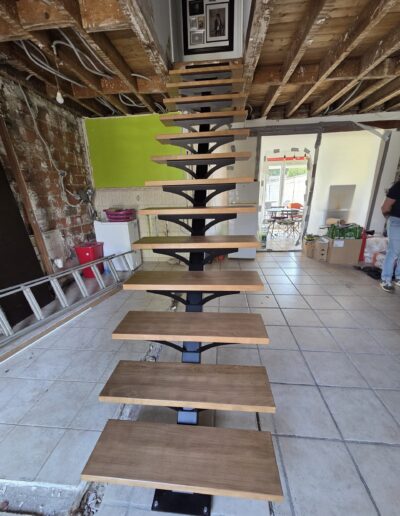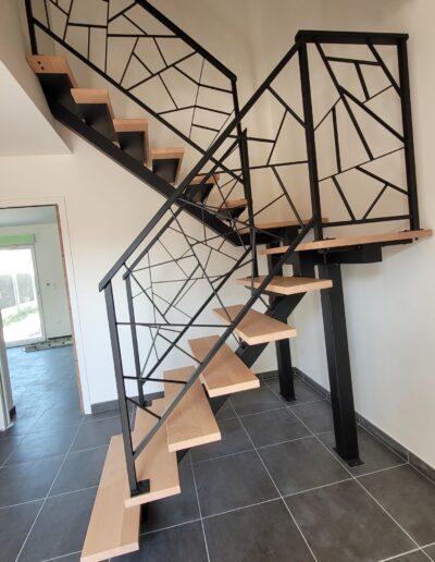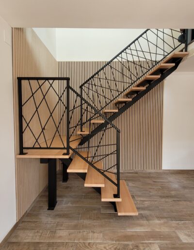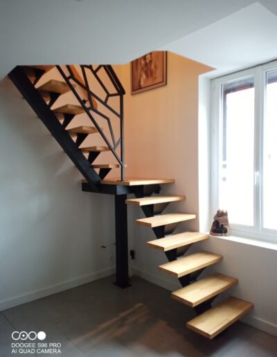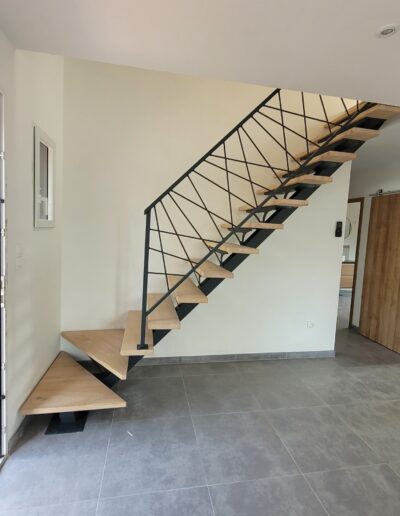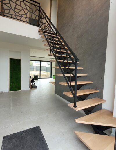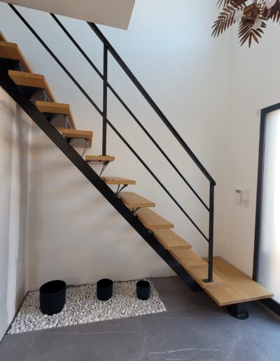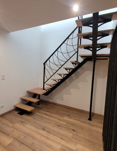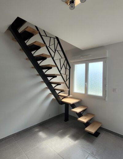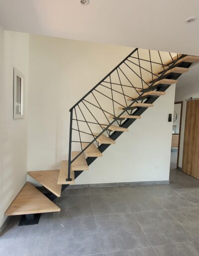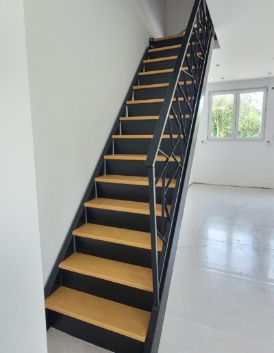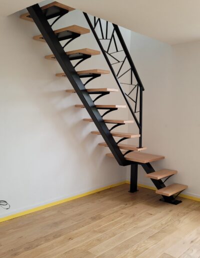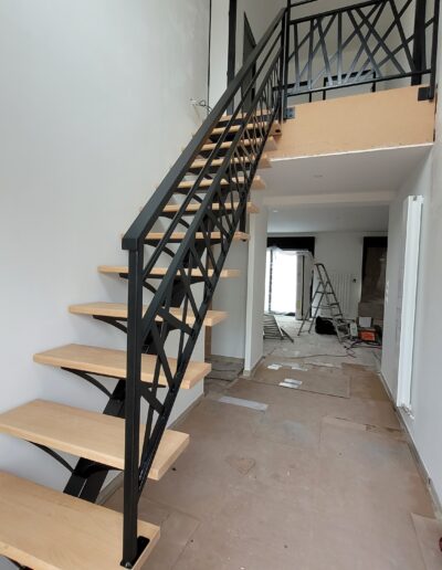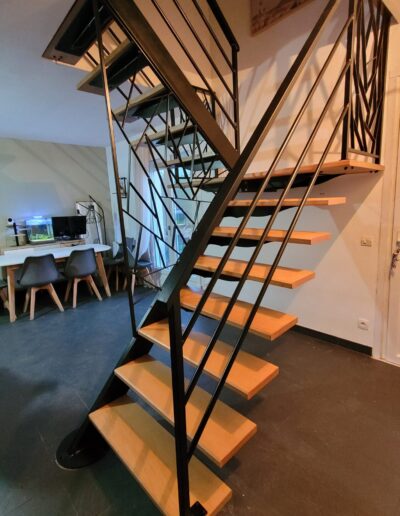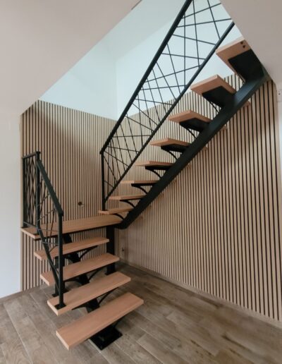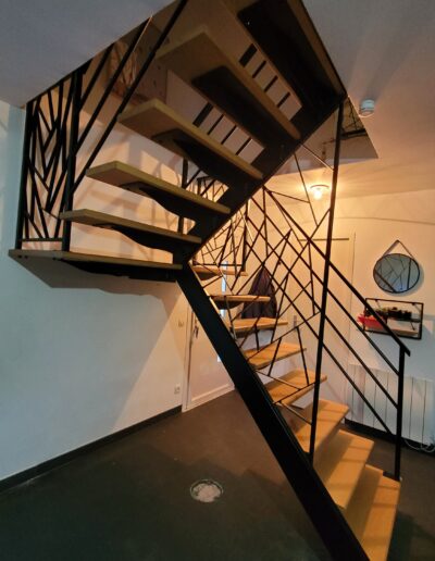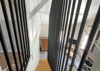 L’ensemble du processus de conception vise a créer un équilibre harmonieux entre le métal et le bois, tout en s’assurant que l’escalier est à la fois solide, durable et esthétiquement attrayant.