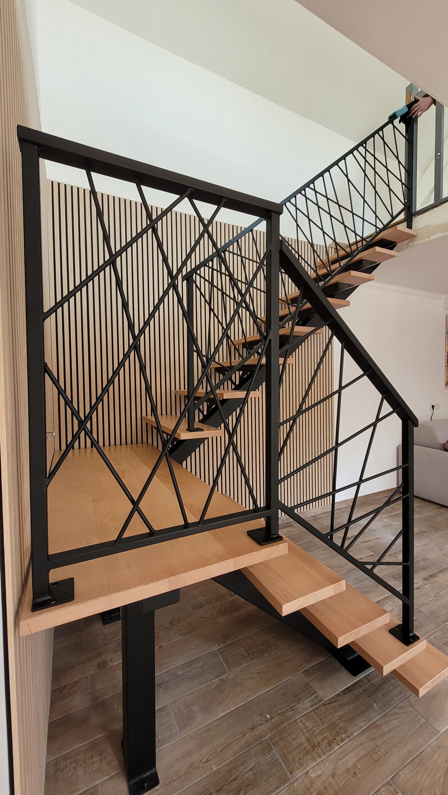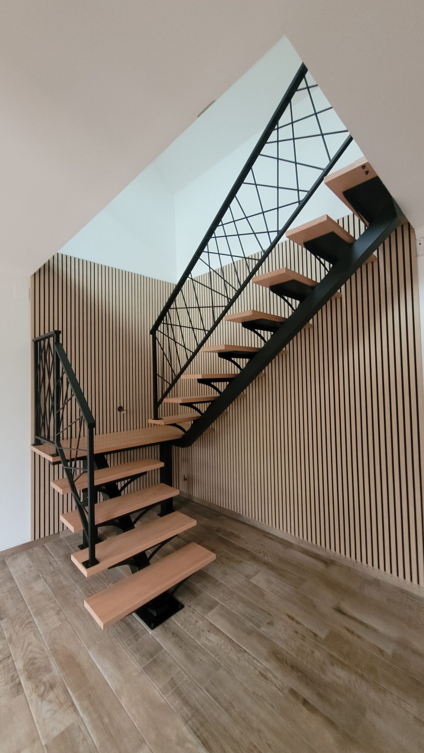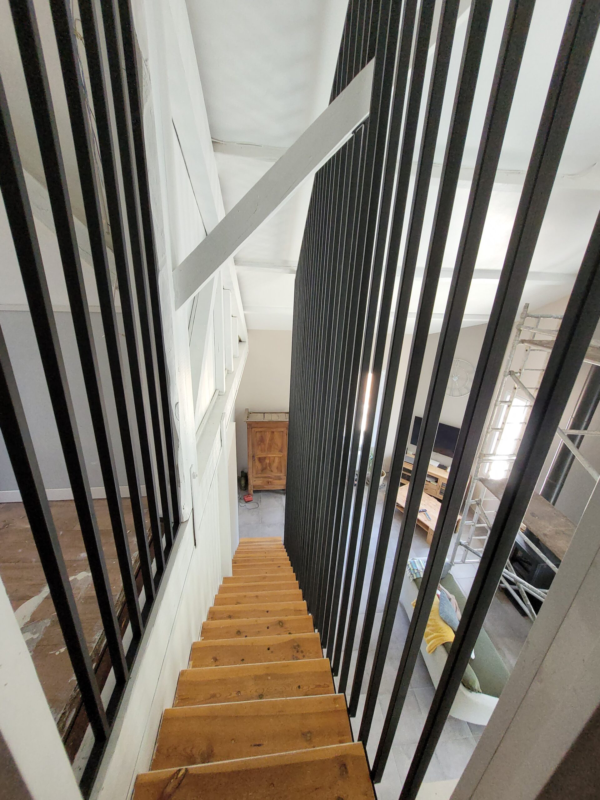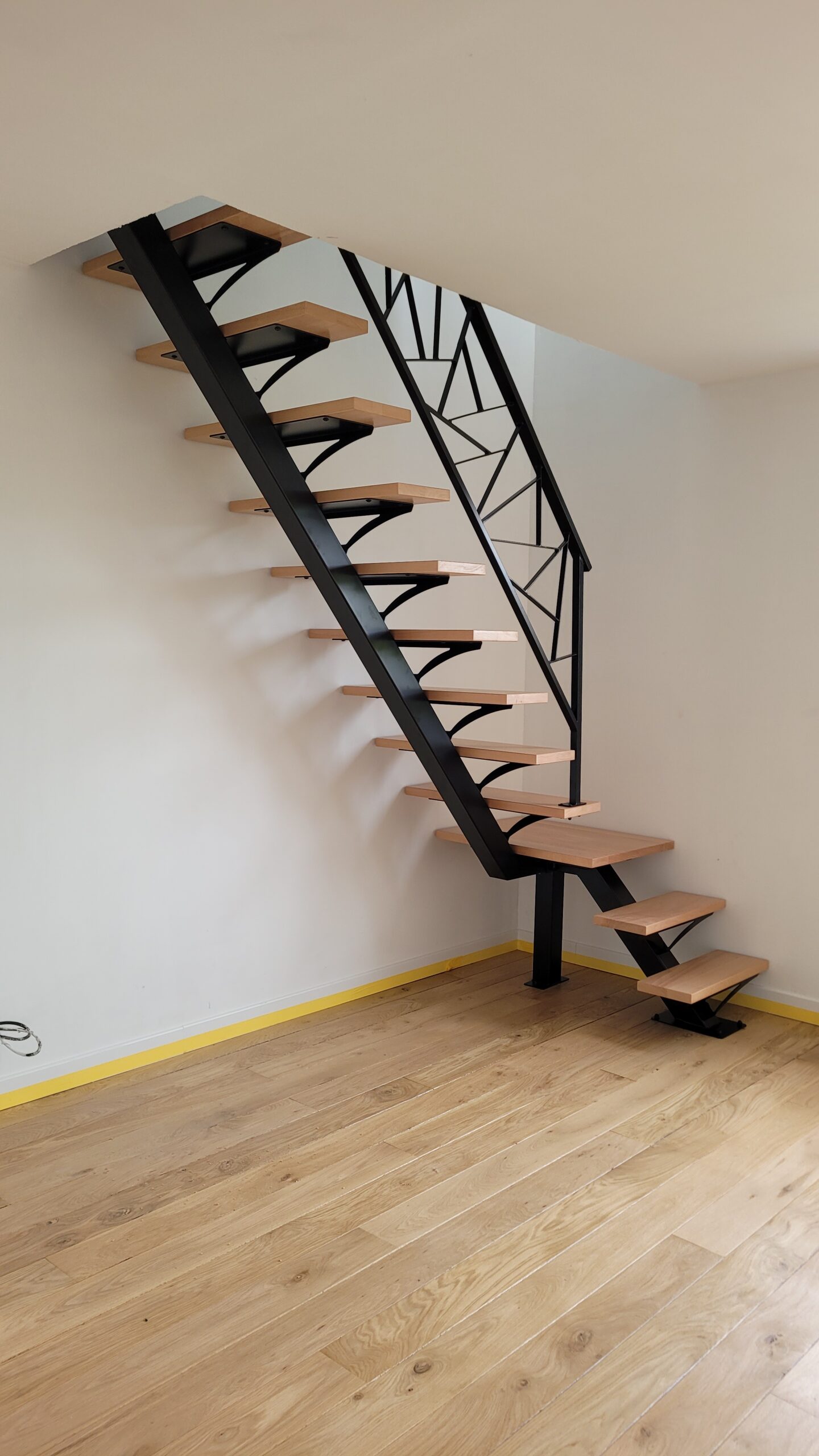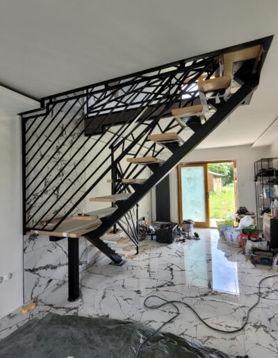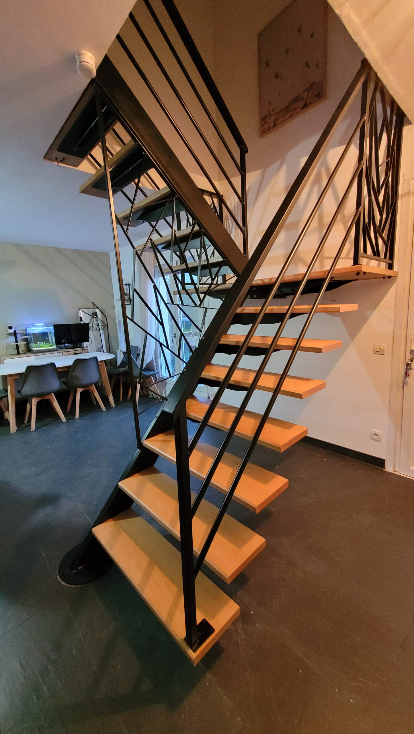 L’ensemble du processus de conception vise a créer un équilibre harmonieux entre le métal et le bois, tout en s’assurant que l’escalier est à la fois solide, durable et esthétiquement attrayant.