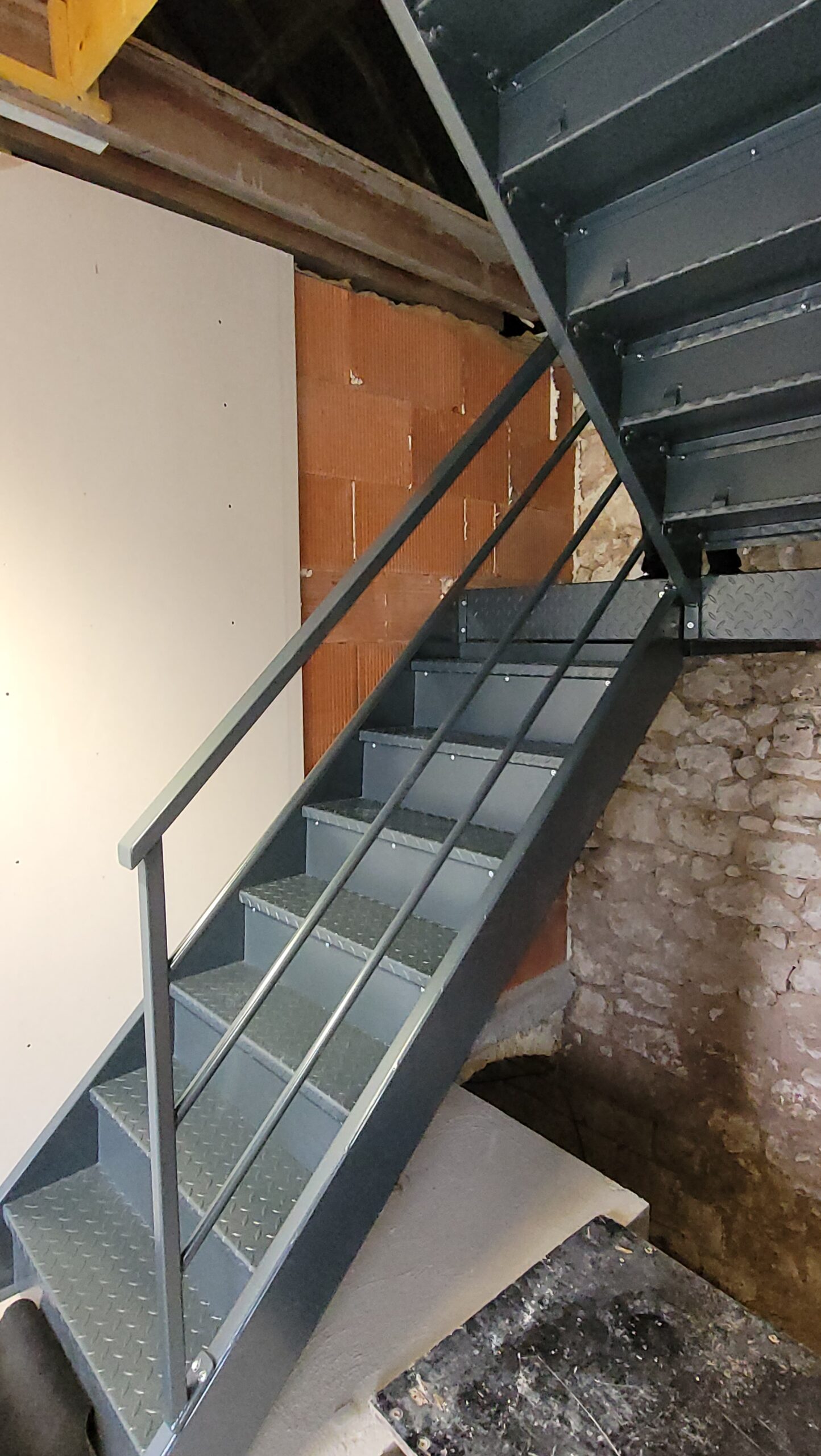 La structure métallique est souvent fabriquée à partir d’acier, d’aluminium ou d’autres matériaux métalliques durables. Elle est conçue pour être solide et stable tout en offrant un support sûr pour les marches.